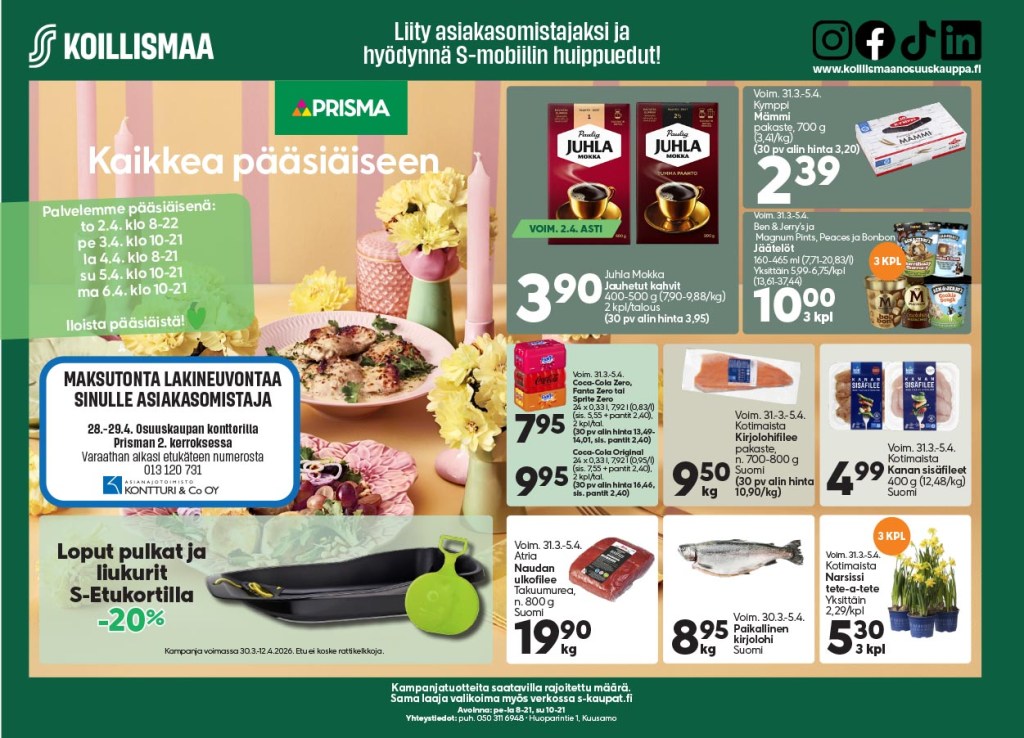 Prisman ruokatorilta löytyy myös monipuolisesti valmiita kalatuotteita.